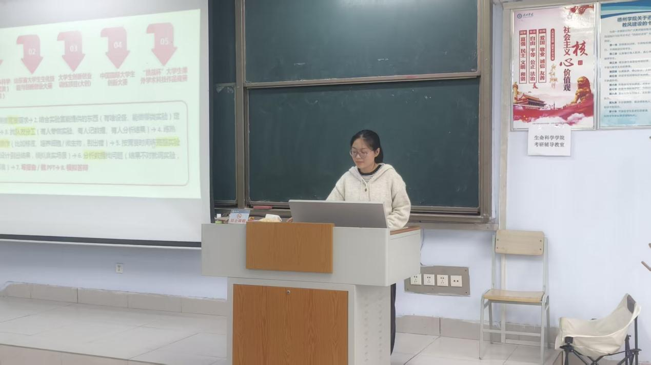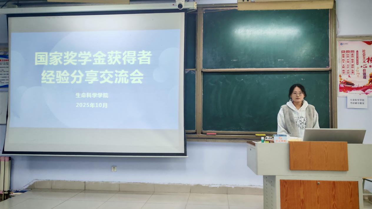 为充分发挥国家奖学金获得者的榜样示范与引领作用,引导在校学生明晰学业规划、提升综合素养,10月18日,生命科学学院成功举办国家奖学金获得者经验分享交流会。本次活动由生物科学专业张琳、食品质量与安全专业荣朝曼两位同学,面向2024级、2025级学生分享学习心得与实践经验。