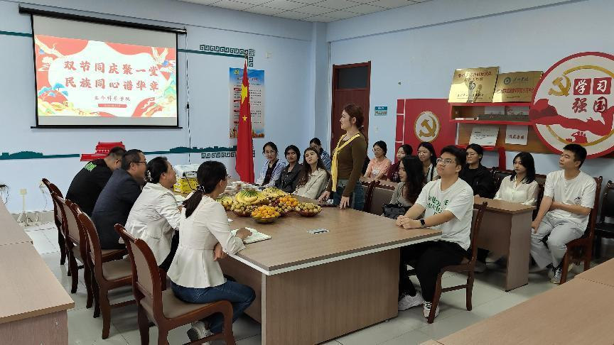 金秋送爽,丹桂飘香,在新中国76年华诞与中秋佳节“双节同庆”的美好时刻,10月1日,生命科学学院于求实楼0204会议室举办“双节同庆聚一堂,民族同心普华章”座谈会。学院邀请来自新疆等省份留校学子齐聚一堂,生科师生组成温暖的“临时大家庭”,共织温馨难忘的“节日记忆”,既传递着学院关怀、缓解了思乡之情,更让“民族团结”的理念在相聚中落地生根,成为双节里最动人的注脚。