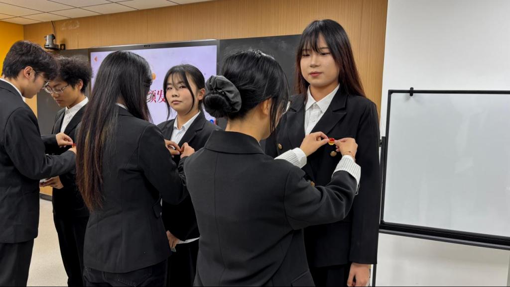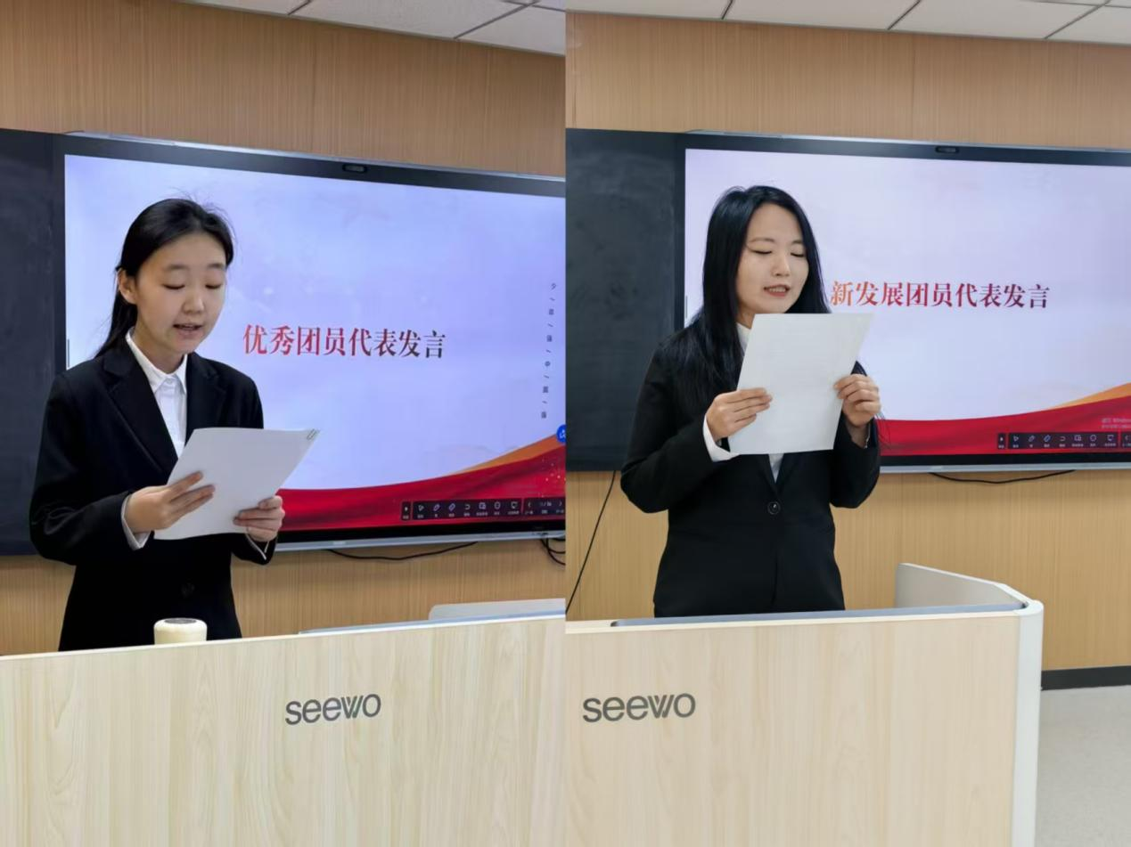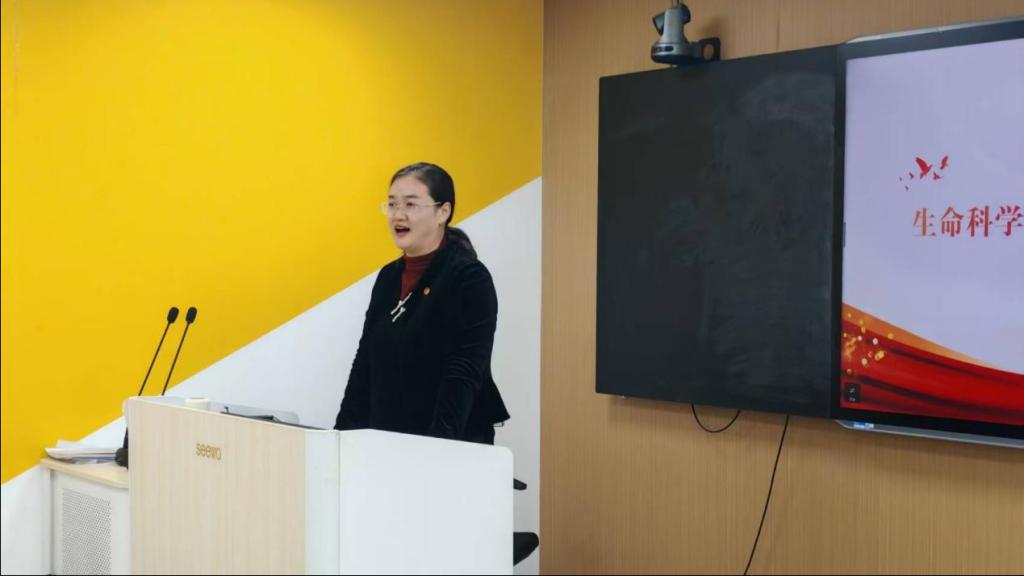 仪式在全体人员齐唱国歌中拉开序幕。随后,主持人宣读新团员名单,新团员面向团旗,庄严宣誓,铿锵誓言彰显青春信仰。在发言环节,优秀团员代表结合自身经历分享成长感悟,勉励新团员以团员标准严格自律,在青春赛道上奋勇争先;新团员代表则表示未来在专业学习中勤学笃行,在实践活动中担当作为,用实际行动践行誓言,表达对加入团组织的自豪与未来的奋斗决心。随后,团员代表为新团员颁发团员证、佩戴团徽,熠熠团徽不仅是荣誉的象征,更承载着团组织的殷切期望。最后,生命科学学院团委书记孙珍辉围绕“初心”与“成长”主题寄语新团员,勉励大家以入团为新的起点,将个人理想融入学院发展与时代使命,在生命科学的学习与实践中锤炼真本领、担当新作为。