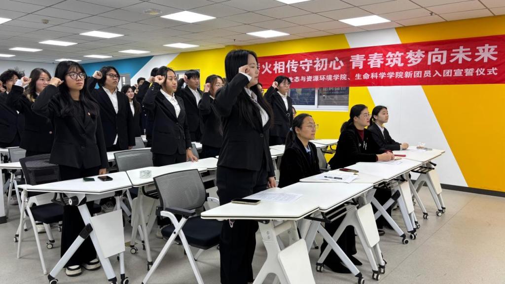 12月16日,“薪火相传守初心,青春筑梦向未来”新团员入团宣誓仪式在大学生赋能中心助航室庄严举行。本次仪式由生命科学学院与生态与资源环境学院联合举办,两院新团员共同参与。生命科学学院团委书记孙珍辉、生态与资源环境学院团委书记李洋洋出席仪式。