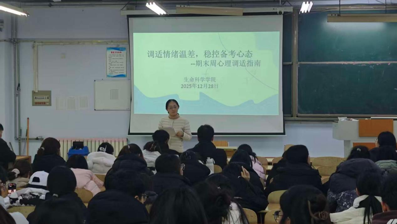 随着期末考期临近,为帮助同学们科学备考,12月28日,郑金召老师于求实楼0112教室开展“调适情绪温差,稳控备考心态”主题活动,通过专业指导帮助大家缓解压力、提升效率。