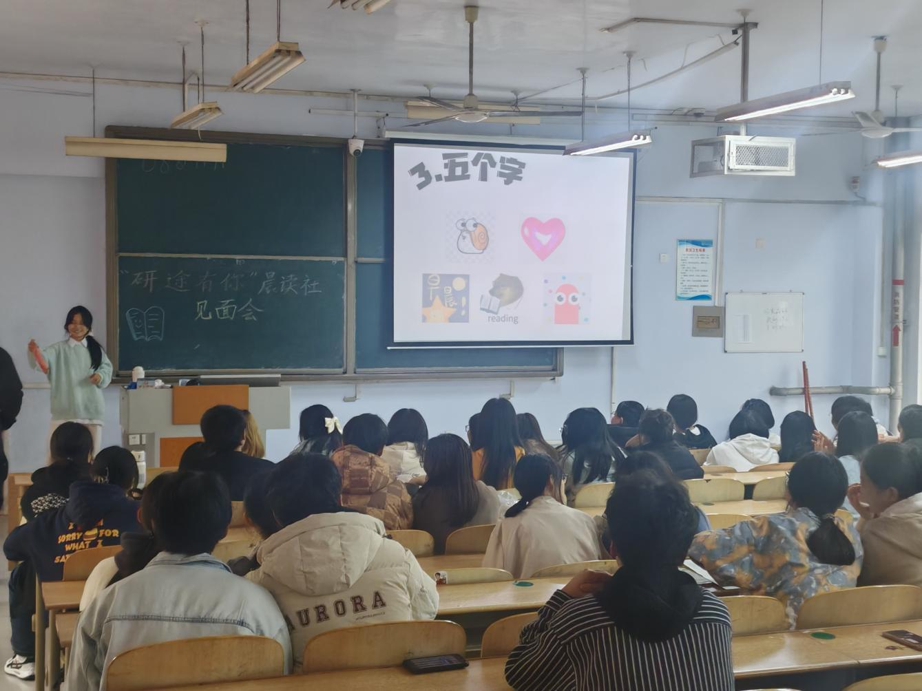 为搭建读书交流平台,营造良好校园读书氛围 2024 年 11月 9 日,德州学院生命科学学院于求实楼 0118 教室,成功举办“研途有你”晨读社社团见面会活动。活动中,同学们积极交流分享心得体会,在互动中结识了新的朋友,增进了彼此的友谊,不仅丰富了课余生活,更培养了阅读兴趣与习惯。此次活动为不同学院学生搭建了沟通桥梁,展现了校级社团的组织能力,为校园文化活动的持续开展积累了实践经验。