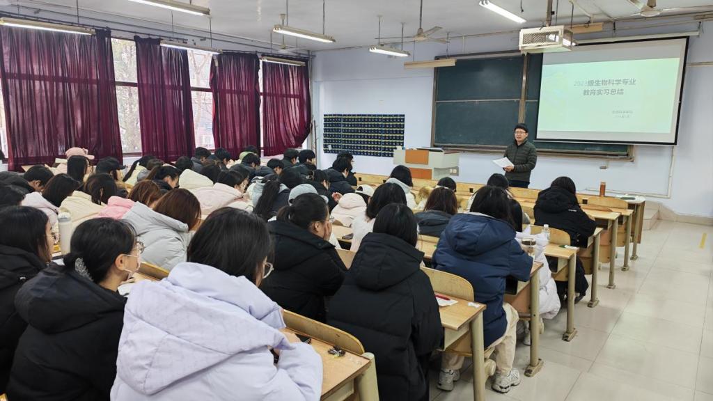 为全面总结2023级生物科学专业教育实习工作成果,深化师范生对教育教学实践的认知,助力师范生夯实专业技能、明确职业方向,1月17日,生命科学学院于求实楼0118教室召开2023级生物科学专业教育实习总结大会。