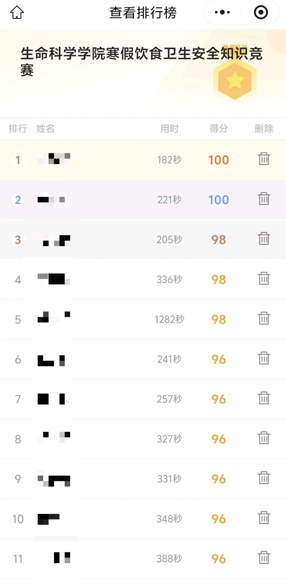 为进一步强化学生寒假期间饮食安全知识储备,提升食品安全防范意识与应急处置能力,3月4日,生命科学学院以线上答题形式成功举办“饮食卫生安全”知识竞赛。本次竞赛兼具知识性与实用性,吸引各年级学生广泛参与,营造出关注健康、重视安全的良好校园氛围。